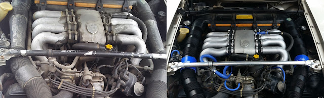 The 1983 Porsche 928s is a beautiful and cool car no question but after 32 years she will be showing her age and that is OK.  A few things that extend beyond just routine maintenance will need to be done. After combing through 928 community forms and various other group support systems it became obvious that one action was required first and foremost.  The rubber in the engine bay would need to be replaced. I spent the better part of  two days of looking for a condom in the engine bay to no avail before I re-read the posts and I learned the errors of my ways!  Fuel hoses, rubber fuel hoses that is what they were referring to. I always thought of the car as a female anyway finding a condom in the engine bay would have just been, well, wrong.
